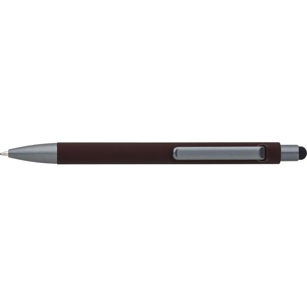 Kemični svinčnik, pisalo za zaslon na dotik, z matiranim ročajem in sponko. Material: plastika, železo, silikon. Mere: Ø1,1 x 14,8 cm.