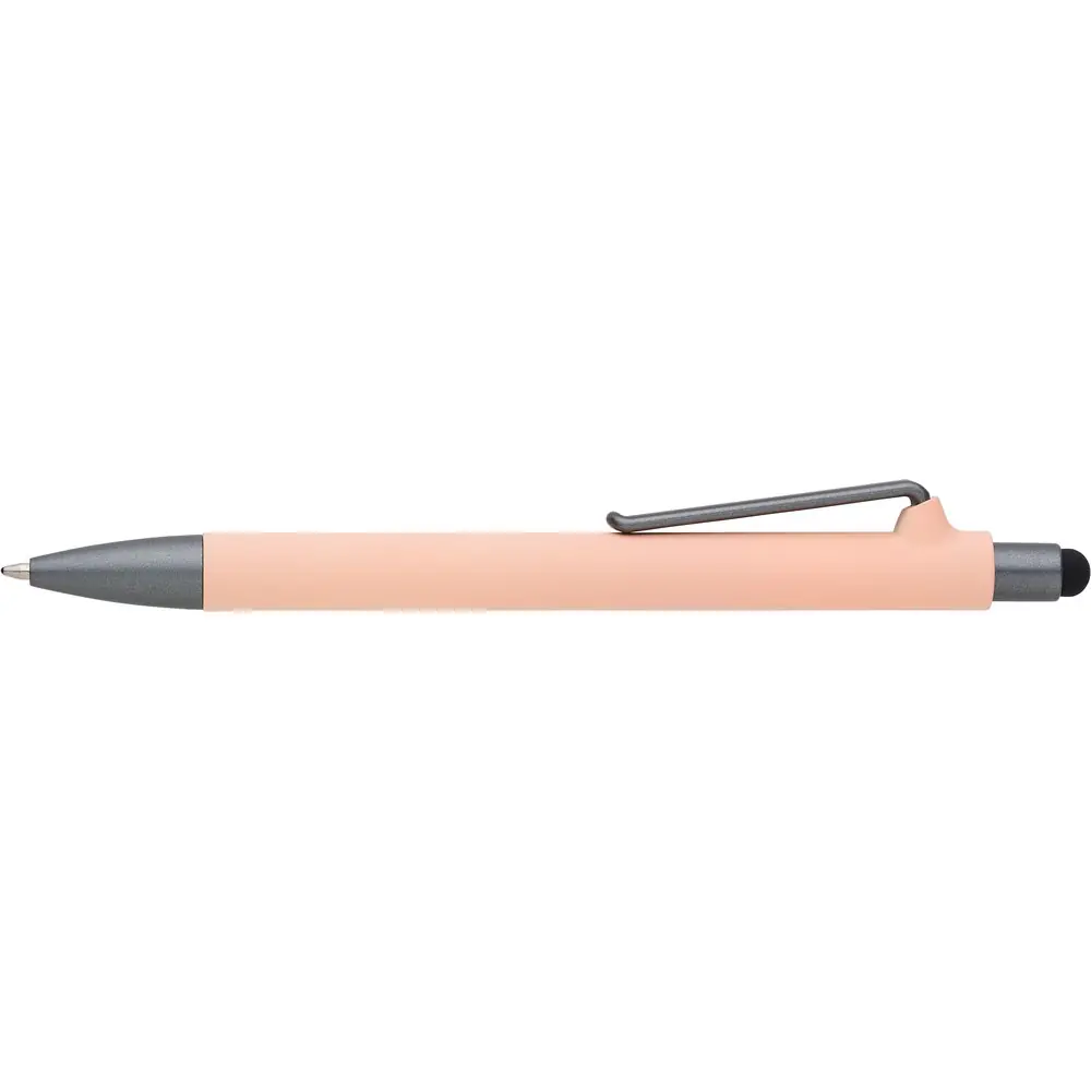 Kemični svinčnik, pisalo za zaslon na dotik, z matiranim ročajem in sponko. Material: plastika, železo, silikon. Mere: Ø1,1 x 14,8 cm.
