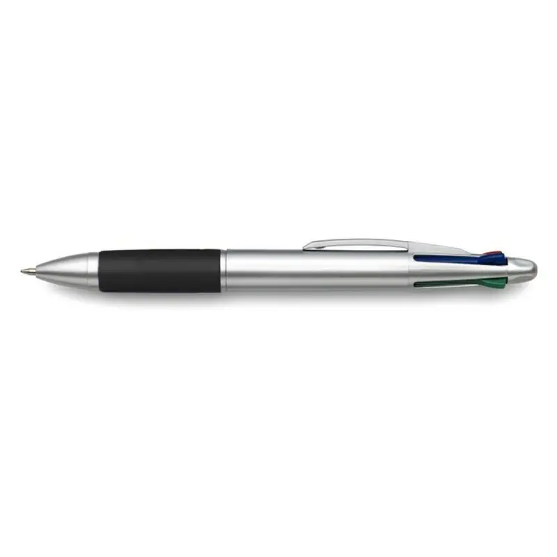 Pisalo z gumijastim ročajem in črnilom štirih barv: rdeče, modre, zelene in črne Material: plastika, guma. Mere: Ø1,5 x 14,1 cm.