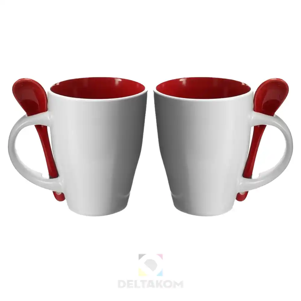 Skodelica keramična 300 ml z žlico rdeča – kakovostna skodelica za promocijo.