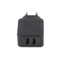 Maxlife MXTC-02 polnilnik v črni barvi z dvema USB-A izhodoma (5V/2.4A na port), inteligentna razporeditev toka in zaščita pred prenapetostjo.