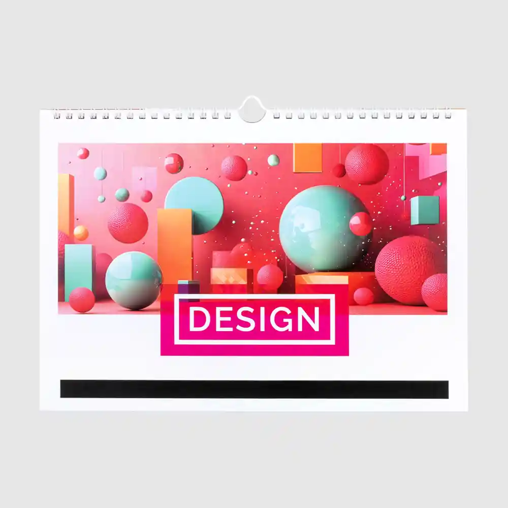 Ležeč format A3. Full color tisk na 135 g papirju, podložni karton 300 g, bela spirala in obešanka. Pošljite svoj dizajn in naročite kakovosten tisk.