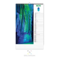 Koledar Barvitost slovenske narave 2026 z motivi slovenskih pokrajin. Spiralna vezava, označeni prazniki, veliko prostora za zapiske. Možnost dotiska logotipa.
