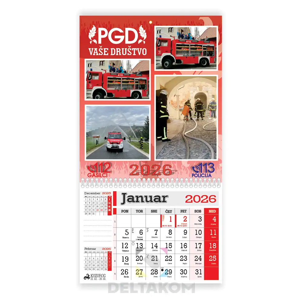 Koledar GASILSKI 12-listni nadkarton 2026 MODEL 2 – tradicionalni gasilski koledar za društva.