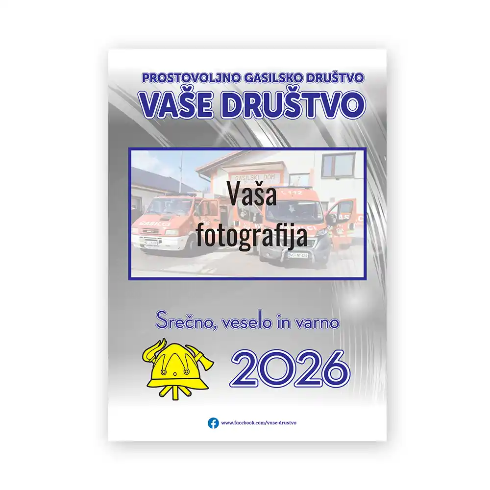 Naročite gasilski koledar 7-listni 2026 A3 Model 10. Kakovostni materiali, lunine mene, prazniki, prostor za beležke in možnost personalizacije s fotografijami.