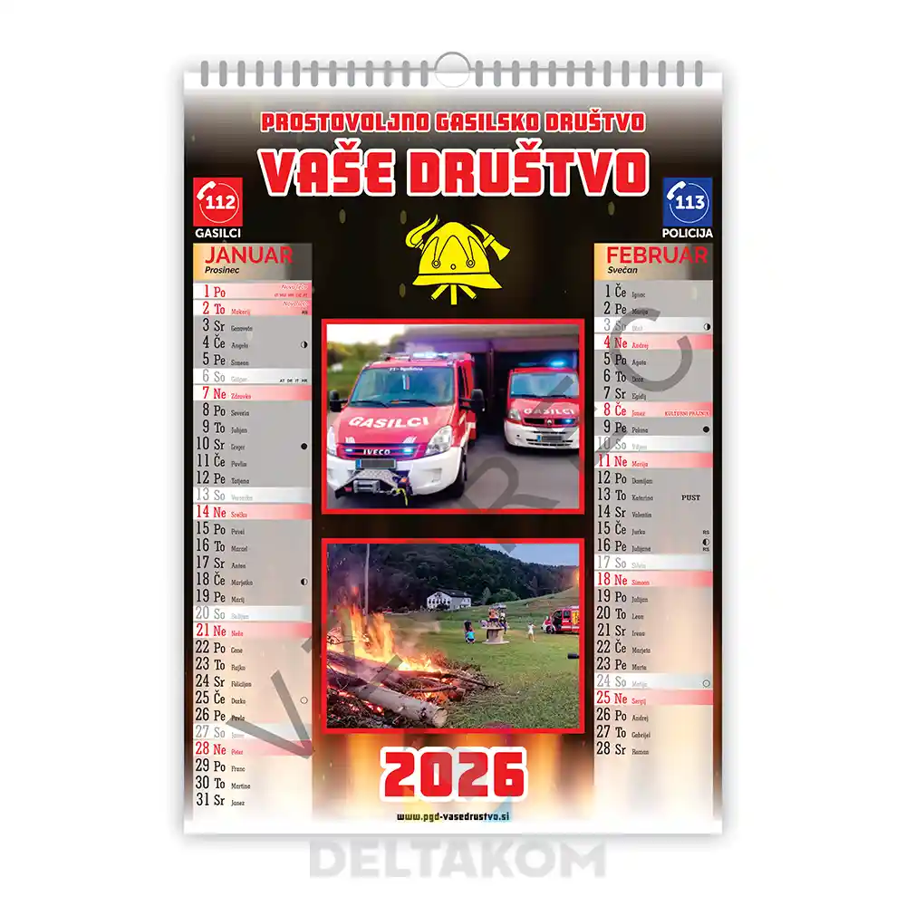 Koledar GASILSKI 7 listni A3 2026 Model 2 združuje funkcionalnost, preglednost in možnost personalizacije – popolna izbira za gasilska društva!