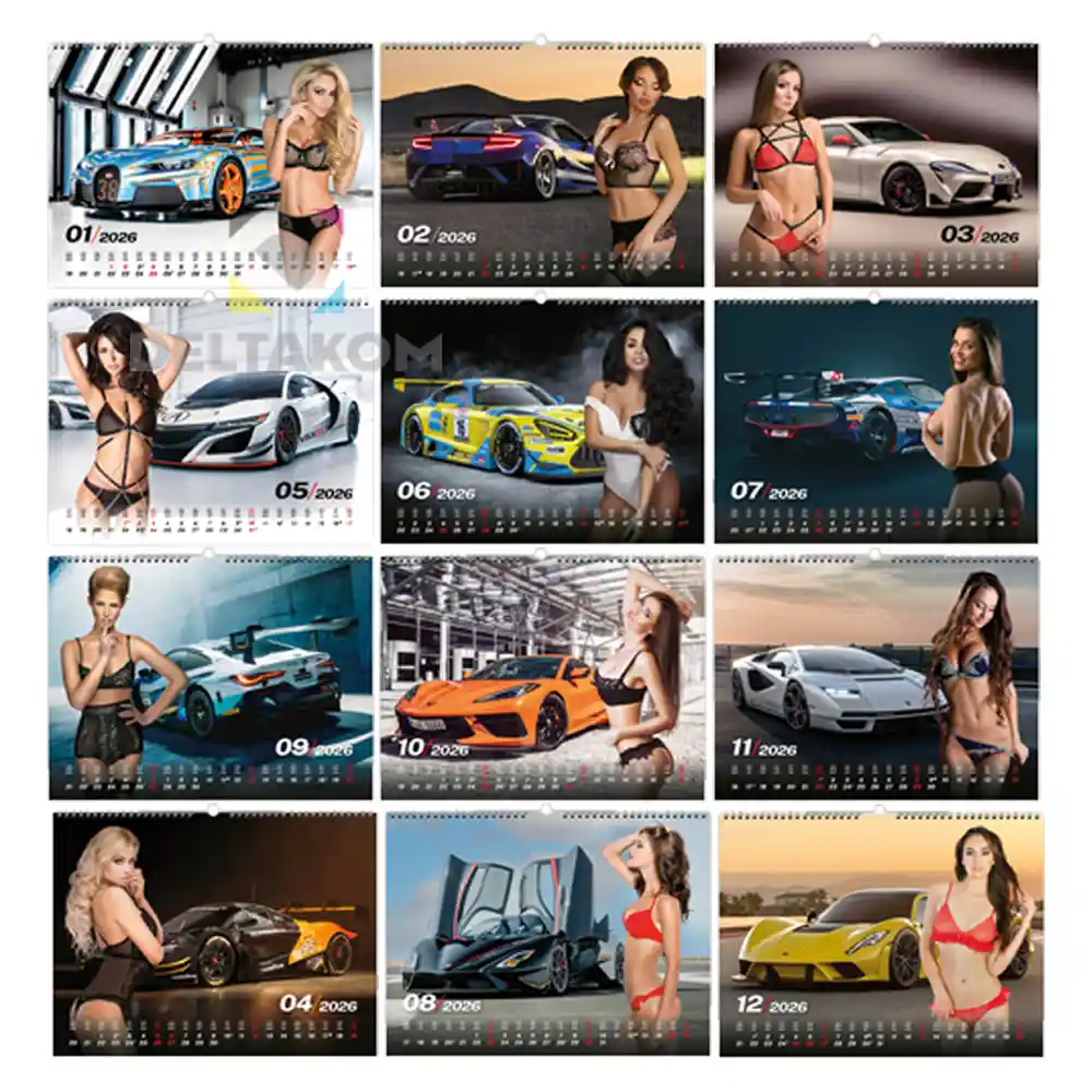 Koledar GIRLS & CARS 2026 – koledar s fotografijami lepih deklet in atraktivnih avtomobilov, odlična izbira za ljubitelje hitrosti in lepote.