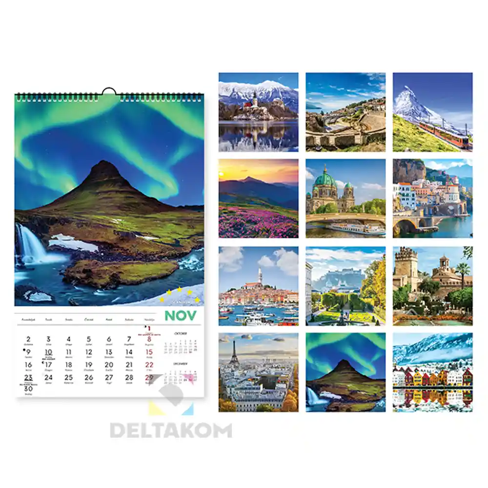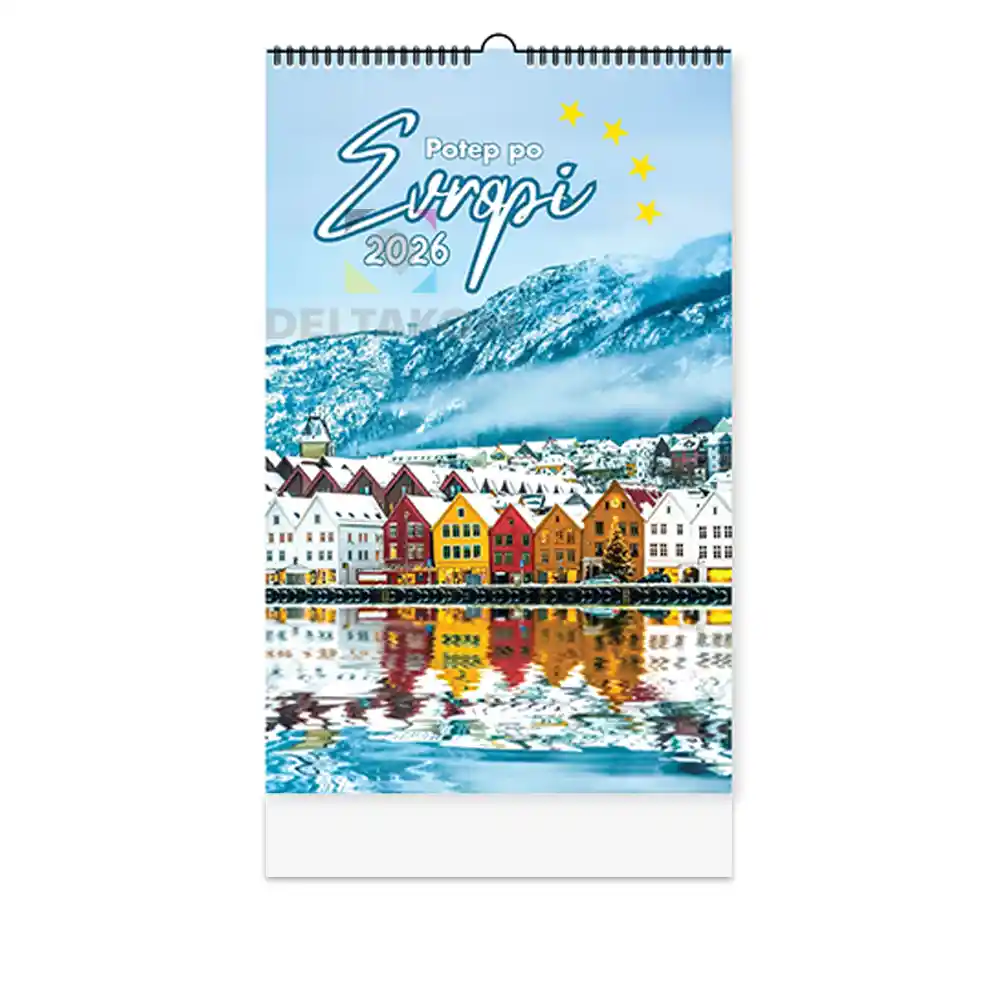 Odkrijte Koledar POTEP PO EVROPI 2026 s čudovitimi fotografijami evropskih mest in pokrajin. Kakovosten tisk, 13 listov, prostor za dotisk logotipa. Naročite zdaj!