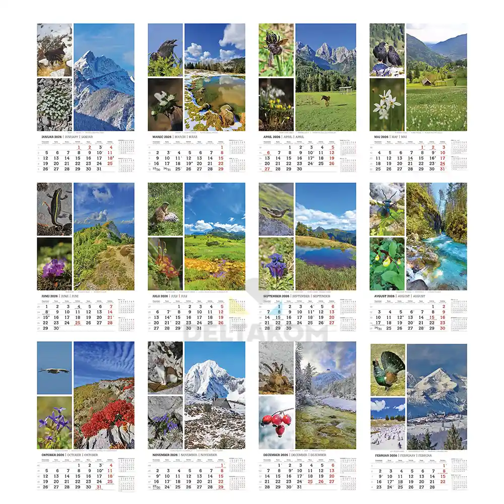 Koledar stenski LEPOTE GORA 2026 – čudoviti pogledi na gorske pokrajine.