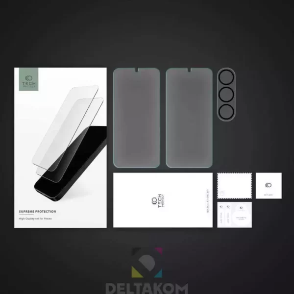 Tech-Protect Supreme komplet je nepogrešljiv dodatek za vsakodnevno zaščito vašega telefona Samsung Galaxy S23. Vključuje kaljeno steklo za zaslon in kaljeno steklo za kamero, ki učinkovito ščitita napravo pred praskami, udarci in drugimi poškodbami.
