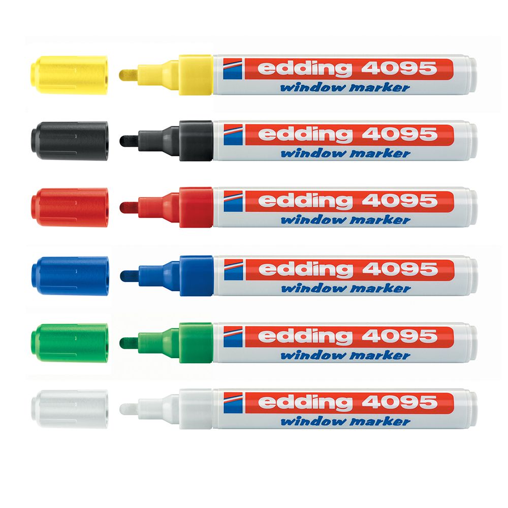 Kredni marker Edding 4095 omogoča enostavno ustvarjanje privlačnih sporočil in okraskov, hkrati pa ga brez težav odstranite. Edding 4095 je nepogrešljiv pripomoček za pisanje menijev, akcij, oglasov ali ustvarjalnih projektov.