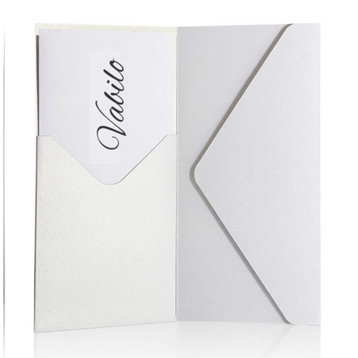 Kuverta DL PEARLS-BELA z žepom je izdelana iz kakovostnega 220 g papirja PEARLS, ki ji daje eleganten satenast lesk. Poseben notranji žep omogoča, da v kuverto shranite karton, voščilnico ali vabilo, zaradi česar je idealna izbira za slavnostne priložnosti. V paketu je 5 kosov, prodaja se na zavitek. V ponudbi je samo kuverta, notranji karton ni priložen.
