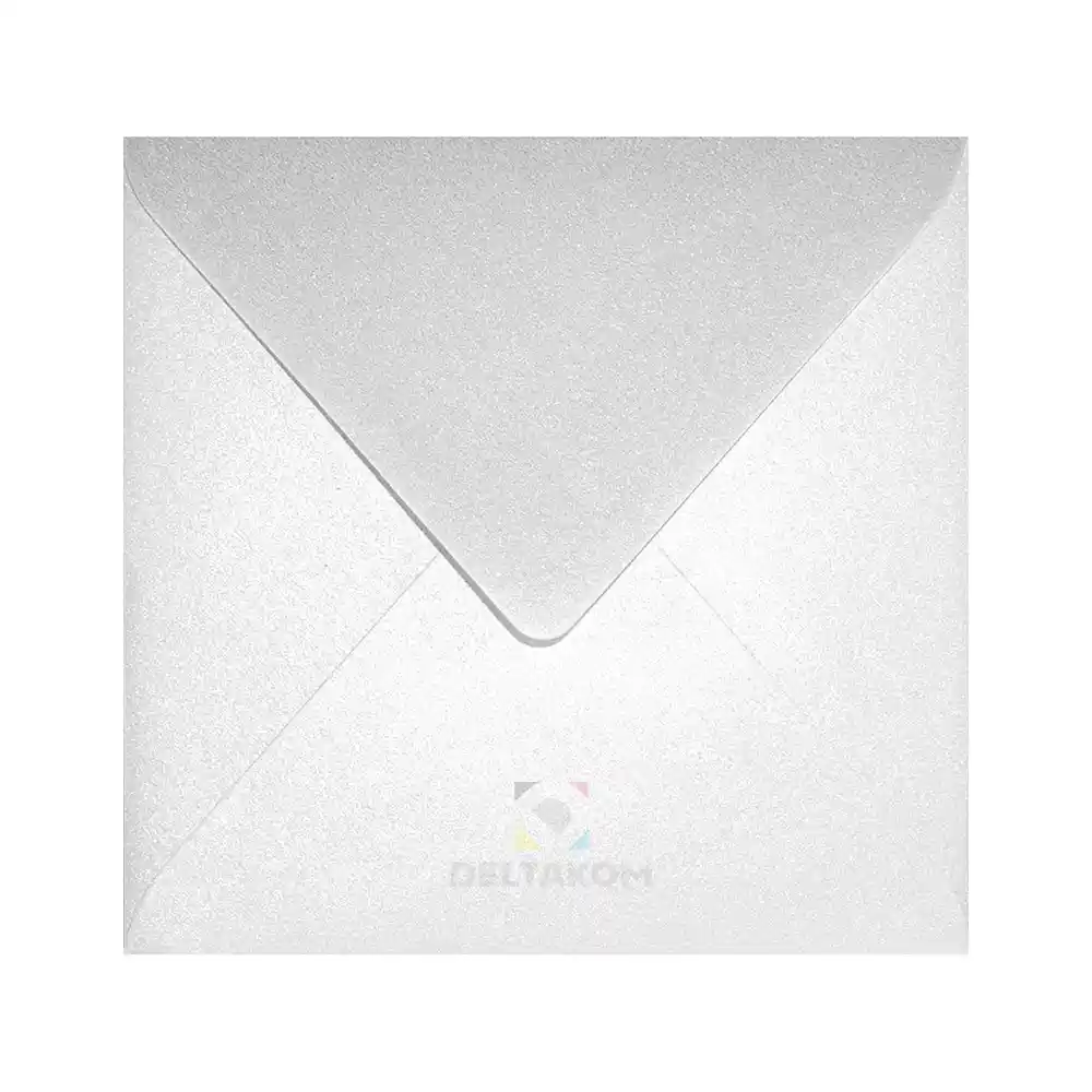Kuverta 153 mm ASTERA METALLIC White, 153 × 153 mm, 120 g. Mokro zapiranje. Elegantna bela biserno sijajna kvadratna kuverta za vabila, voščilnice in pisma.