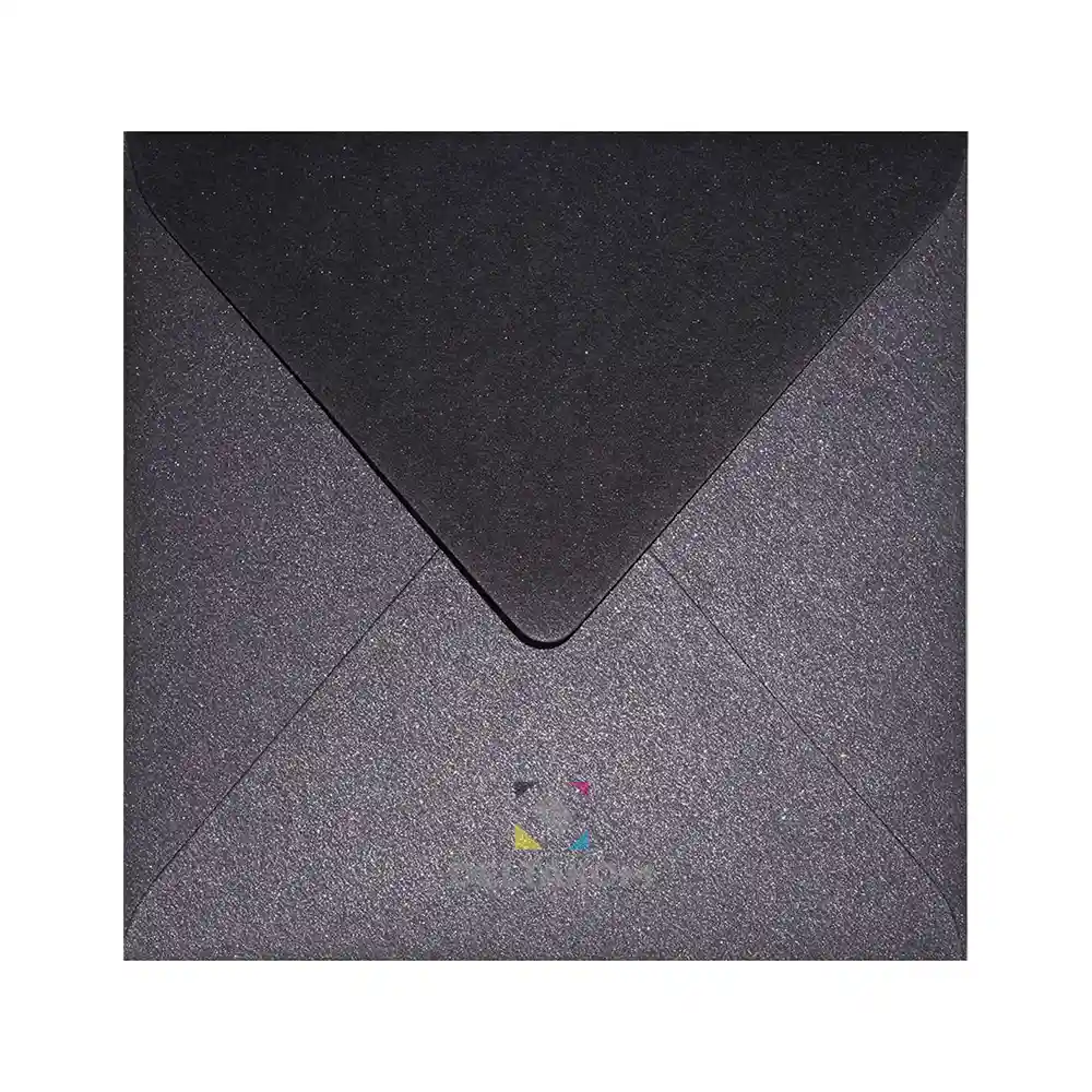 Kuverta 153 mm ASTERA METALLIC Black-Copper, 153 × 153 mm, 120 g. Mokro zapiranje. Elegantna črno-bakrena biserno sijajna kvadratna kuverta za vabila in pisma.