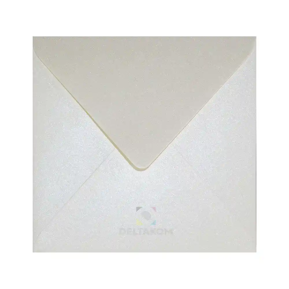 Kuverta 153 mm ASTERA METALLIC Cream, 153 × 153 mm, 120 g. Mokro zapiranje. Elegantna krem biserno sijajna kvadratna kuverta za vabila, voščilnice in pisma.