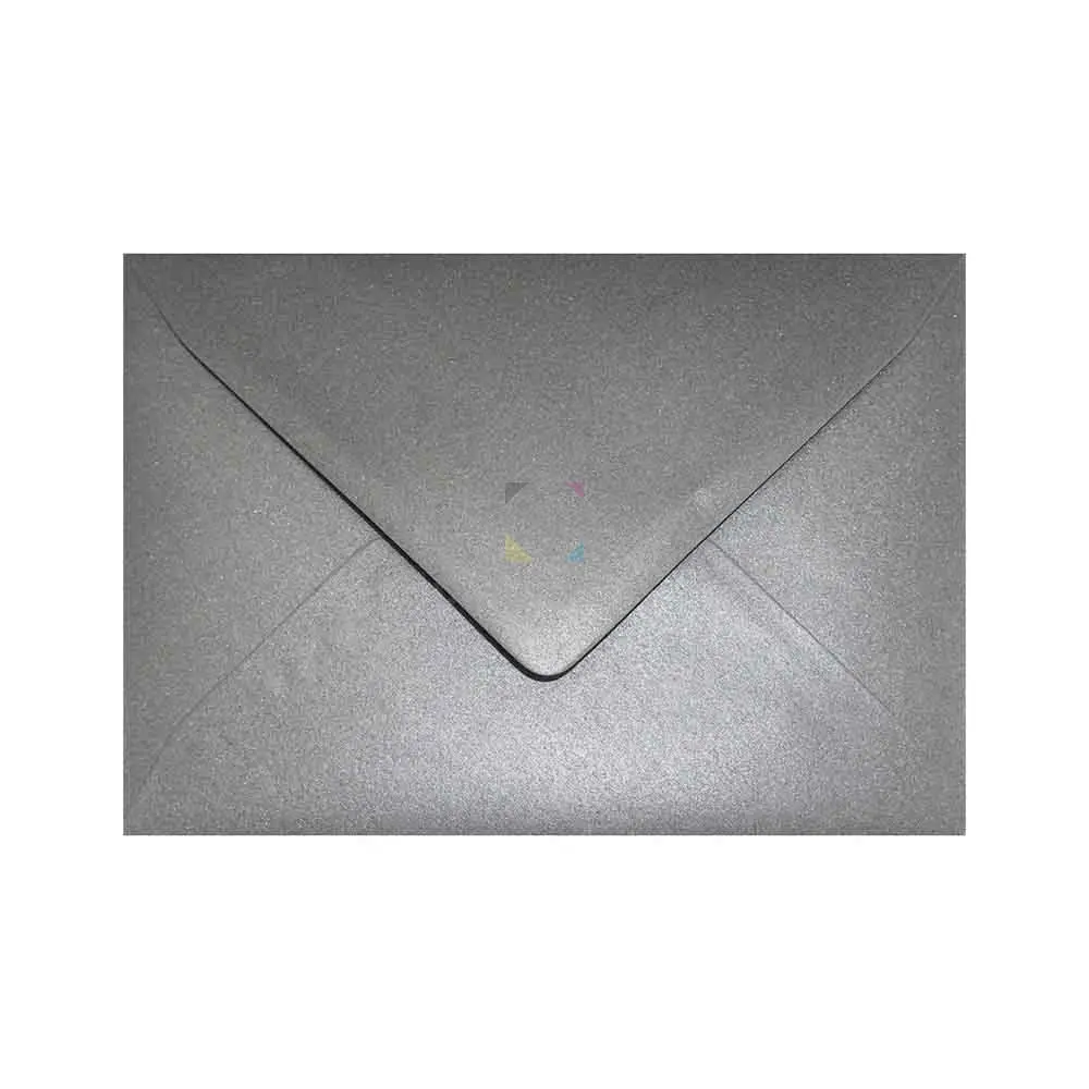 Kuverta B6 ASTERA METALLIC Grey, 125 × 175 mm, papir 120 g. Mokro zapiranje. Elegantna siva biserno sijajna kuverta za vabila, voščilnice in posebna pisma.