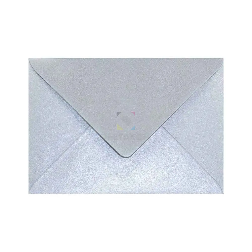 Kuverta B6 ASTERA METALLIC Silver, 125 × 175 mm, papir 120 g. Mokro zapiranje. Elegantna srebrna biserno sijajna kuverta za vabila, voščilnice in slavnostna pisma.
