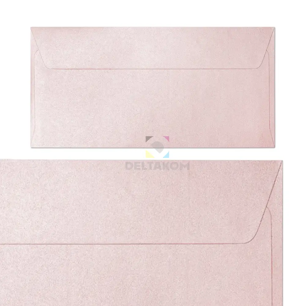 Kuverta DL Milleniums ROZA, 110 × 220 mm, papir 120 g. Mokro zapiranje. Elegantna roza kuverta z nežnim kovinskim sijajem. Pakiranje za vabila in pisma.