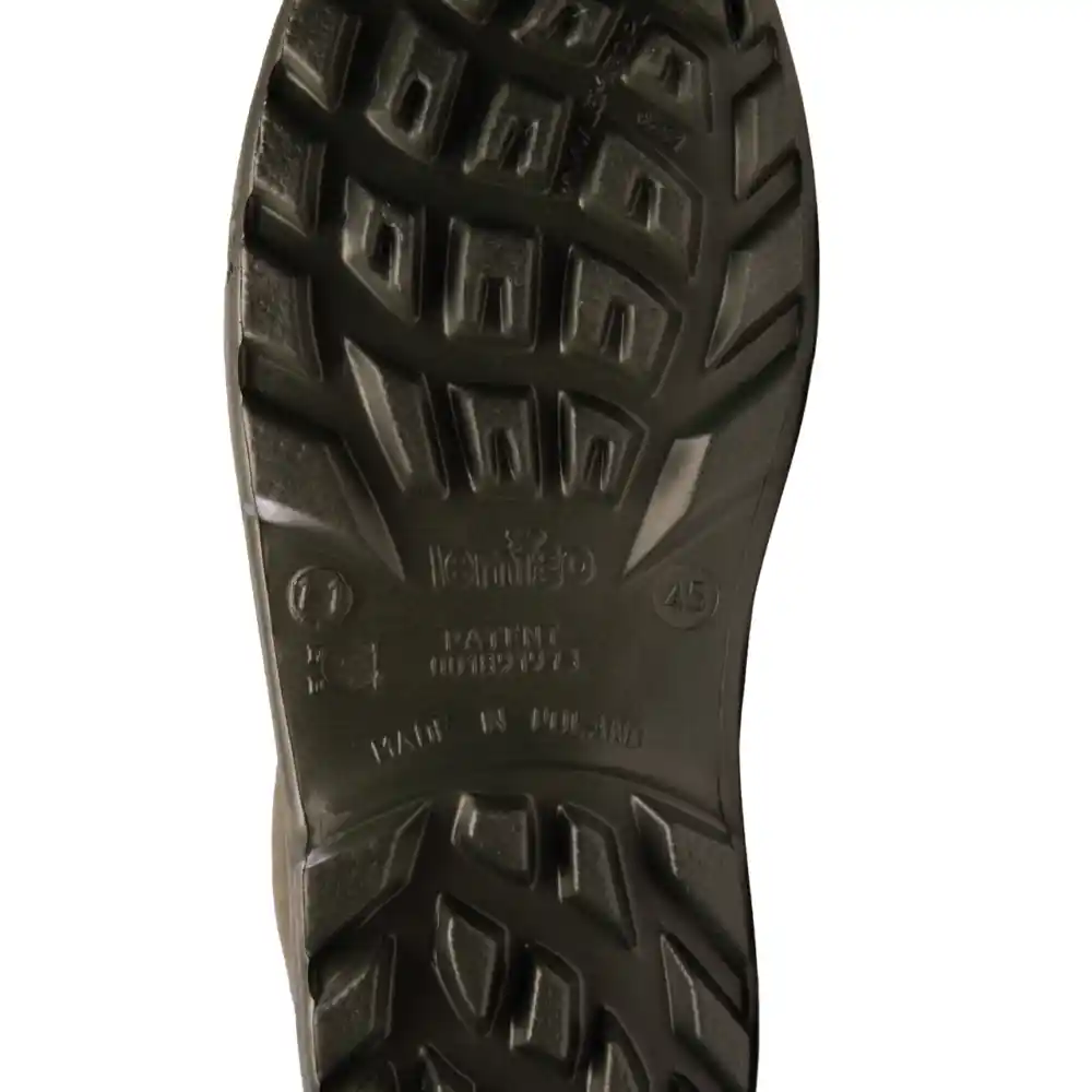Kategorija zaščite: SB. Kapica: izdelana iz kovine, odporna na udarce z energijo 200 J in stiskanje do 15 kN. Vložek za zaščito srednjega dela podplata: izdelan iz Kevlarja, ščiti stopalo pred prebodom s silo 1100 N. Podplat: odporen na dizelsko gorivo FO, absorpcija energije pete. Ergonomija: EVA ostane prožen tudi pri nizkih temperaturah, kar povečuje udobje.