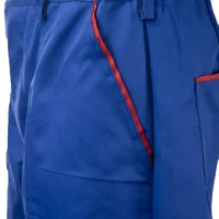 Material: izdelan iz visokokakovostnega materiala, ki zagotavlja stabilnost barve in velikosti tudi po večkratnem pranju. Konstrukcija/šivanje: dvojni šivi, šivani z močno nitjo, barvni robovi, hlače z zančkami za pas. Žepi: žep za merilni trak, dva stranska žepa, žep na zadnjem delu hlač. Prilagajanje pasu: prilagodljiv pas zaradi elastičnega traku.