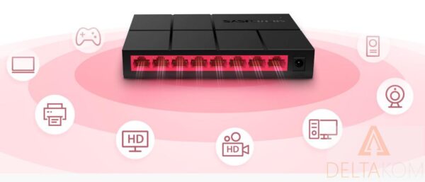 MERCUSYS MS108G mrežno stikalo vam nudi 8 10/100/1000 Mbps priključkov.