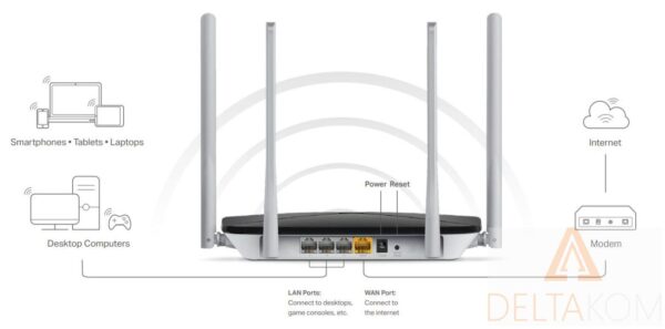 vam omogoča odlično vsakodnevno brezžično povezavo. V skladu z zmogljivim standardom 802.11ac AC12 prinaša neverjetno hitrost Wi-Fi do 1200Mbps, kar je 3x hitreje od hitrosti prejšnjega standarda 802.11n. AC12 omogoča, da vaše domače naprave dosegajo optimalno delovanje Wi-Fi. Je odlična izbira za zagotavljanje hitrejšega in močnejšega brezžičnega interneta v vašem domu ali pisarni.