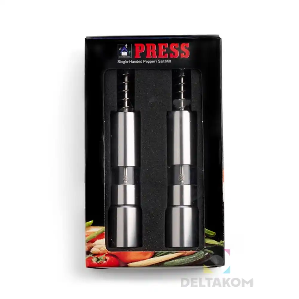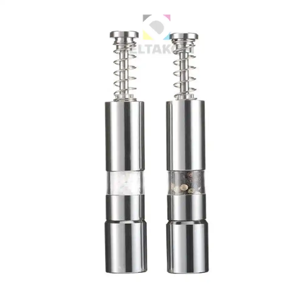 Mlinček za sol in poper je sodoben kuhinjski pripomoček iz nerjavečega jekla, ki omogoča natančno mletje začimb in prinaša eleganten videz na vsako mizo.