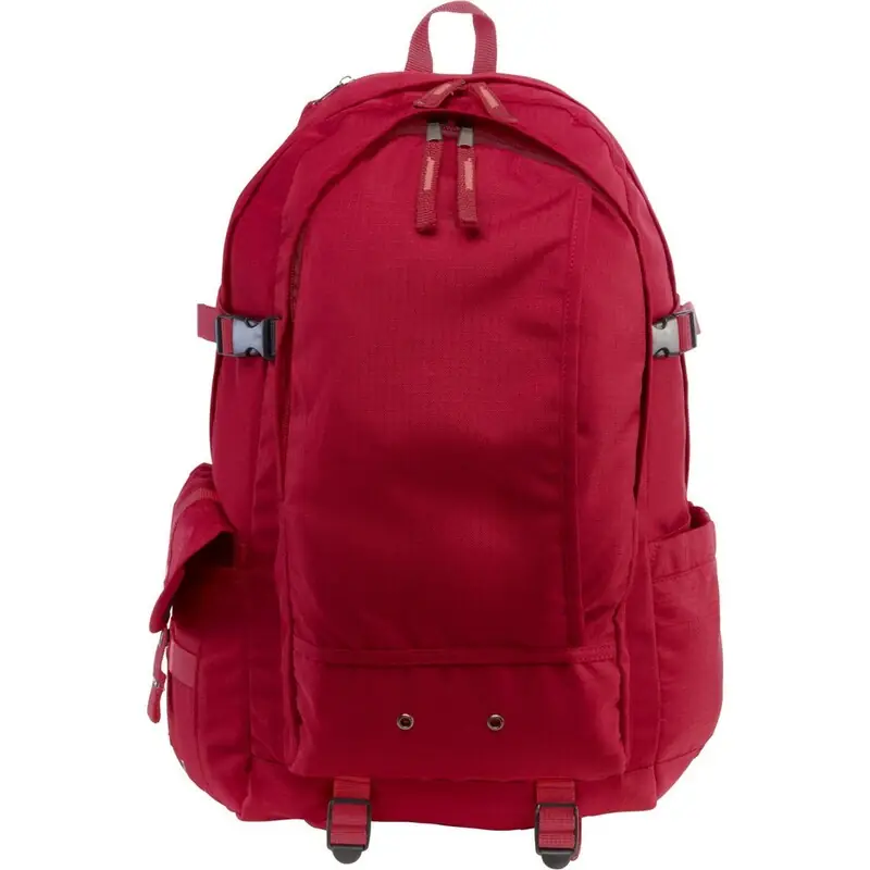 Nahrbtnik z dvema glavnima predaloma na zadrgo in dvema stranskima žepoma Material: ripstop (210D). Dimenzije: mere: 31,5 x 15,5 x 43 cm.