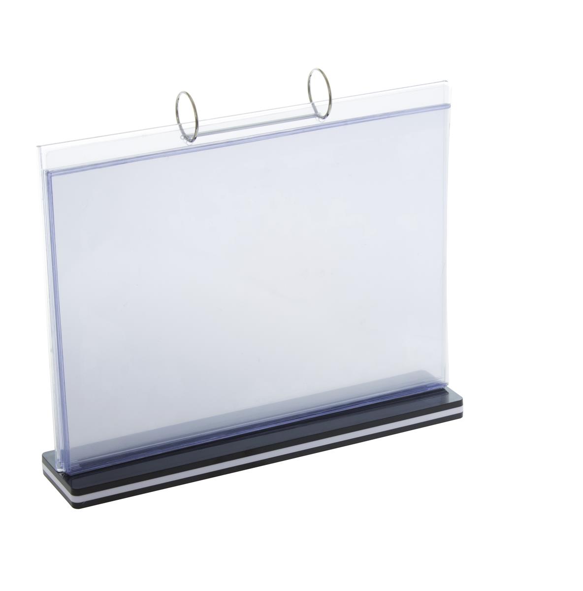 Namizno stojalo za oglaševanje A4ležeče – prozorno akrilno stojalo formata A4 v ležeči orientaciji, idealno za predstavitev cenikov, promocijskih sporočil, obvestil ali jedilnikov. Stabilna konstrukcija omogoča jasno vidnost in enostavno menjavo vsebine.