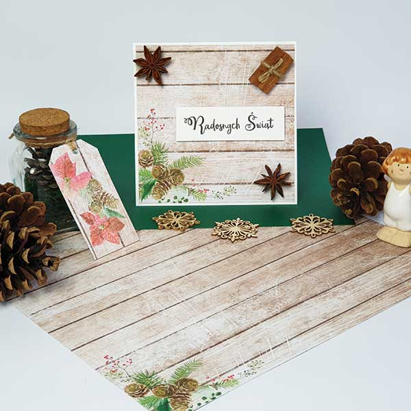 Da bi ustvarili estetsko in elegantno božično voščilnico, zagotovo ne potrebujete veliko materiala in okraskov. Scrapbooking papir Christmas Magic 03 bi bil popolna osnova za tovrstne projekte. Dodajte nekaj dodatkov iz svoje kuhinje in ustvarili boste idealno božično dišečo voščilnico!