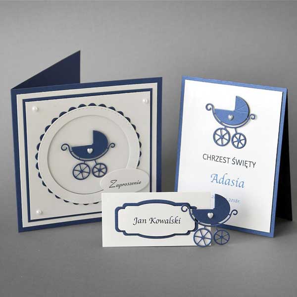 Krstne voščilnice iz safirja Millenium in islandskega diamantno belega kartona z vozičkom iz safirja.