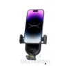 Inteligentni infrardeči senzor zazna telefon, zato se nosilec samodejno zapre. Tesno prileganje ohranja telefon stabilen in varen tudi na neravnih cestah. Če želite sprostiti telefon, preprosto pritisnite oranžni gumb na zadnji strani držala. Na strani naprave so gumbi za vklop in izklop brezžičnega polnjenja.