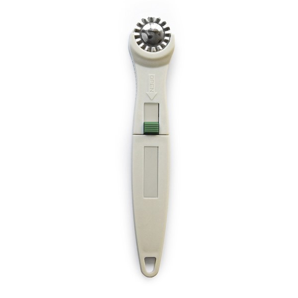 - Dodatni noži – priloženi 4 rezili (2× ravna, 1× cikcak, 1× val)