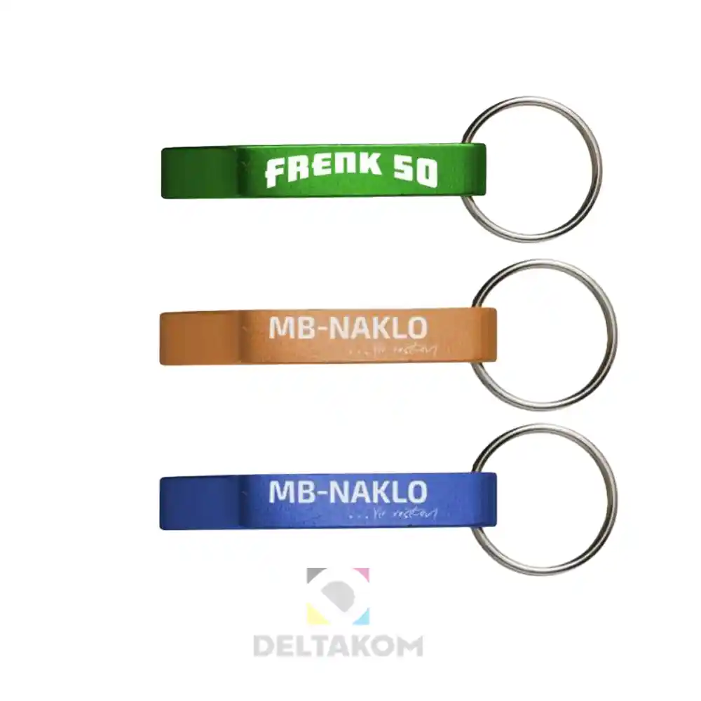 Odpirač za steklenice s kovinskim obročkom za pritrditev na ključe, matiran odpirač, izdelan iz aluminija Material: aluminij. Dimenzije: 5,4 x 1 x 0,9 cm.