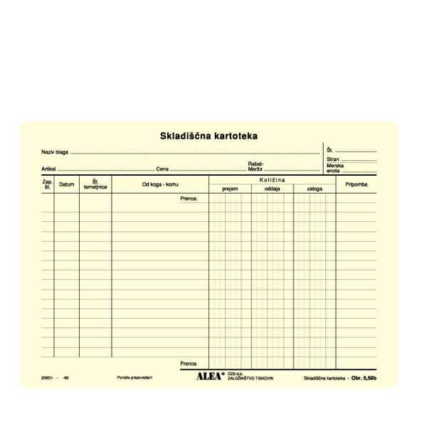 - Vrsta obrazca: skladiščna kartoteka 5-56b