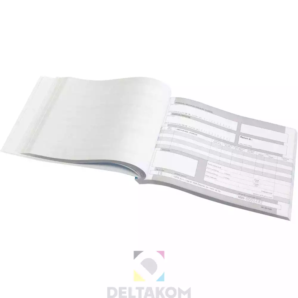 Vsebuje 50 setov po tri liste, ki so namenjeni za isti račun, skupaj 150 listov.