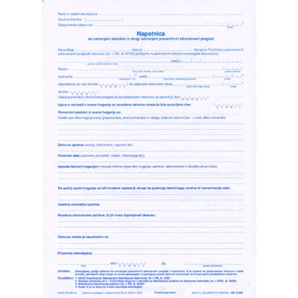 Napotnica za preventivni pregled 8.204 na delta-kom.net! Praktičen obrazec za zdravstvene preglede. Idealna za podjetja. Naročite zdaj!