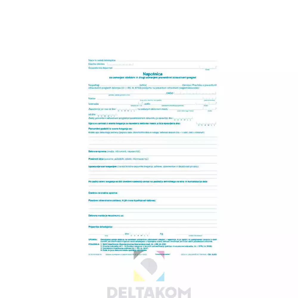 OBRAZEC 8.205 NAPOTNICA ZA ZDRAVNIŠKI PREGLED OBDOBNI