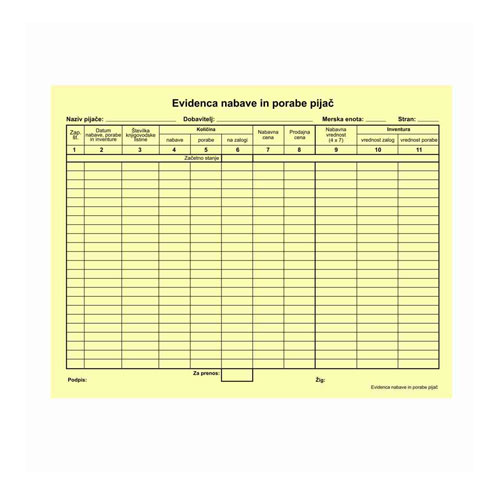 OBRAZEC EVIDENCA NABAVE IN PORABE PIJAČ