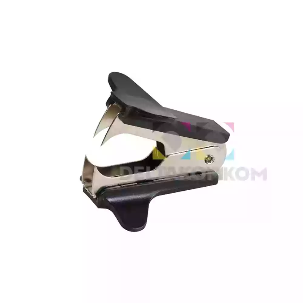 Odstranjevalec sponk, enostaven za uporabo. V črni barvi.