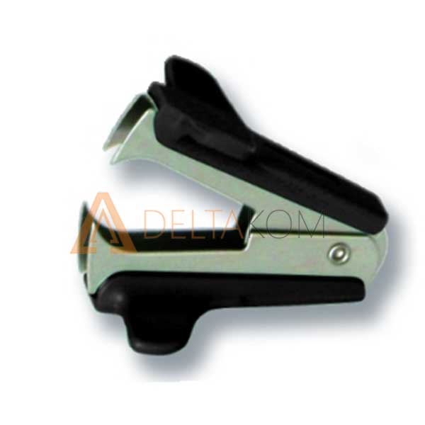 Odstranjevalec sponk, enostaven za uporabo. V črni barvi.