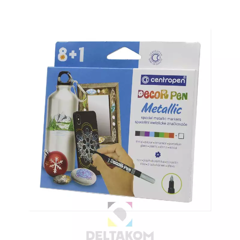 Okrasni marker v metalnih barvah, 8 barvnih odtenkov je namenjen pisanju po kovini, papirju, keramiki, porecalanu.