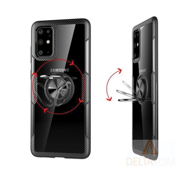 Ovitek Ring Holder s prstanom je izdelek iz visokokakovostnih materialov z zanesljivo podporo za naprave. Ima funkcionalen ročaj v obliki obroča, ki se vrti za 360 stopinj. Opravlja 3 osnovne funkcije: lahko se uporablja kot magnetna plošča za avtomobilska držala, kot udobno stojalo in kot držalo za prste. Prozorna hrbtna stran, črn okvir in prstan.
