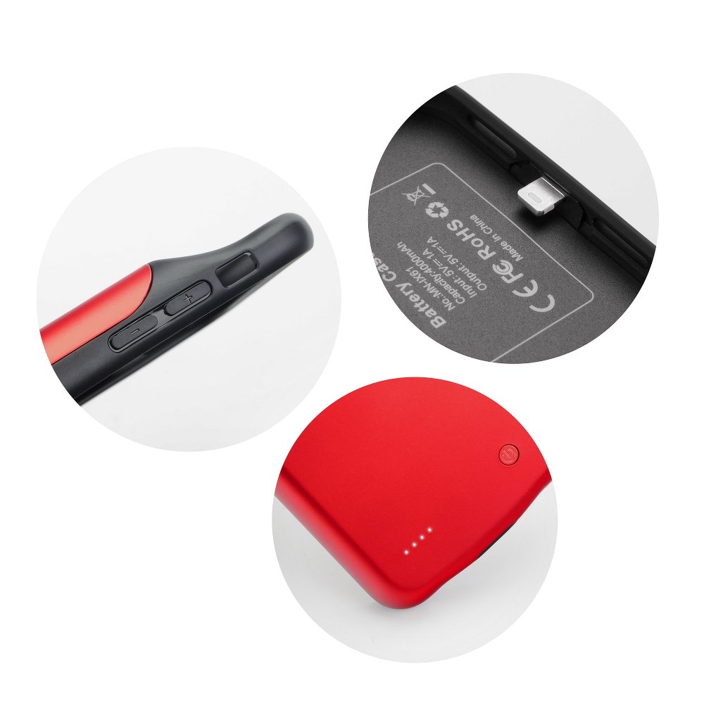 Ovitek z baterijo iPhone X, iPhone XS 3000 mAh v RDEČI barvi.