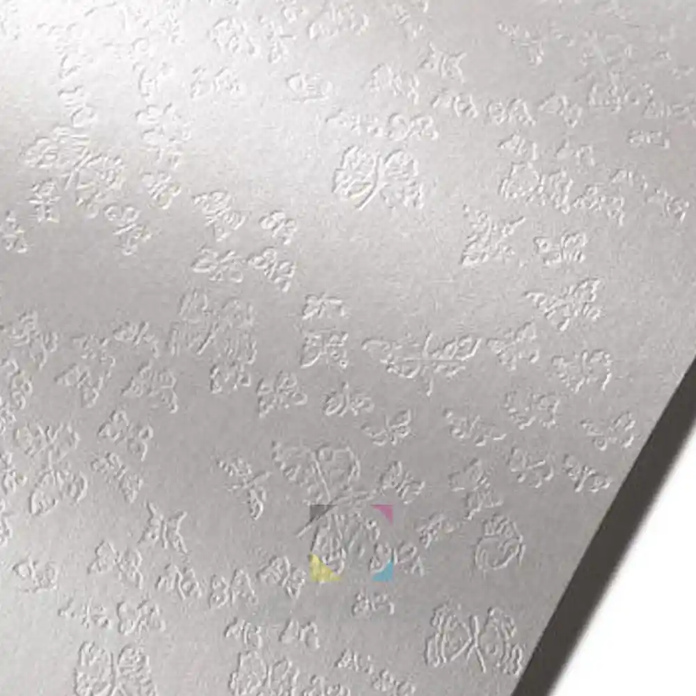 Edinstveno eleganten barvni papir z enostranskim metaliziranim reliefnim tiskom. Idealen za voščilnice, vabila, diplome, jedilnike, potrdila in ovitke. Dobro deluje tako v brizgalnih kot laserskih tiskalnikih. Tehnična obdelava: prepogibanje, zlaganje, lepljenje, spenjanje in številne druge možnosti. Vzorec metuljev.