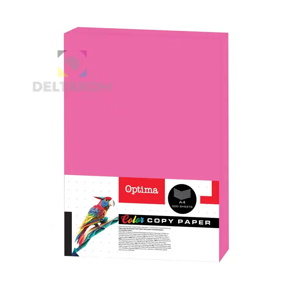 Papir Optima A4 neon fuchsia, 80 g, 500 listov v zavitku. Intenzivna neon barva za obvestila, plakate in promocijske materiale. Primerno za laser in inkjet tisk.