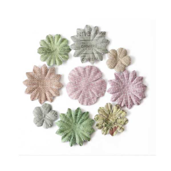 Papirnate rože Blossom mix pastel – komplet papirnatih rož v nežnih pastelnih barvah, odlične za okrasitev vabil, daril in prazničnih aranžmajev.