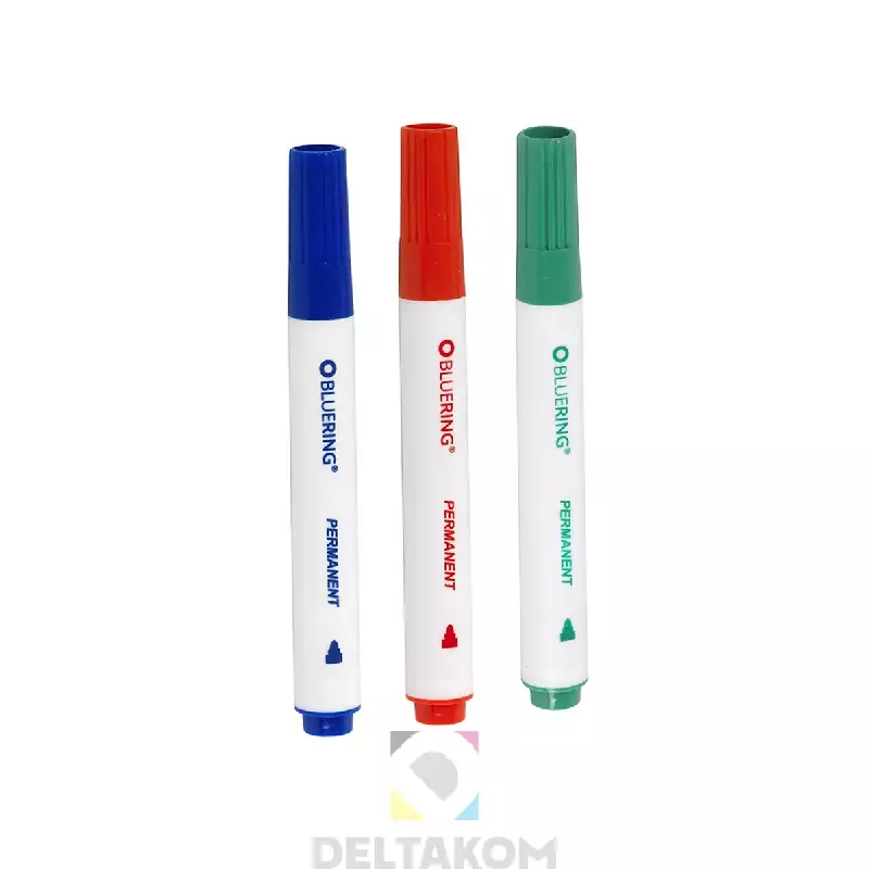 Permanentni marker BLURING z okroglo konico 3 mm, na osnovi alkohola. V barvah: rdeča, modra, zelena, črna. Hitro sušeč, vodoodporen, odporen na praske in svetlobo.