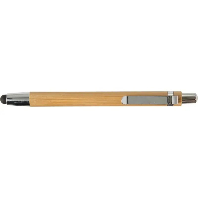 Bambusovo pisalo, pisalo na dotik, s srebrno konico, vrhom in sponko Material: bambus, ABS, kovina. Dimenzije: Ø1 x 13,8 cm.
