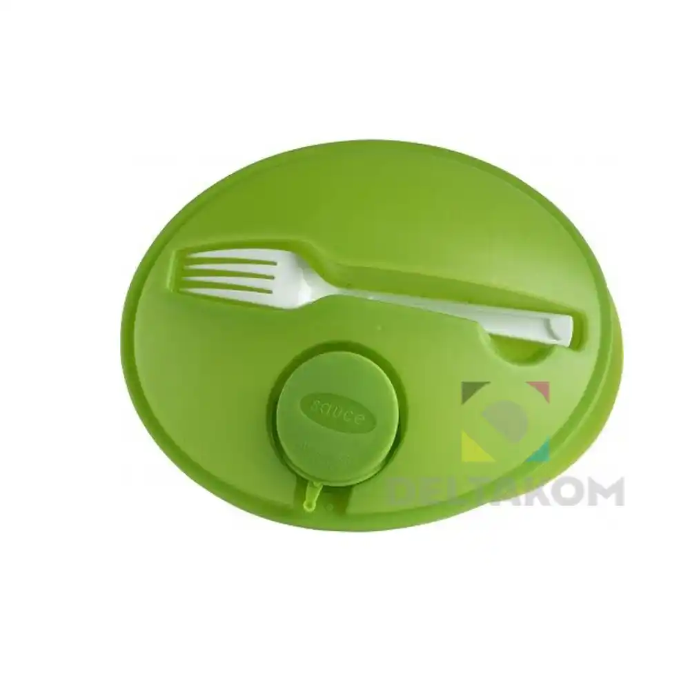 Praktična plastična posoda za solato s kapaciteto 1000 ml in dodatno 50 ml posodico za preliv. Idealna za kosila na poti, piknike in sveže obroke doma.